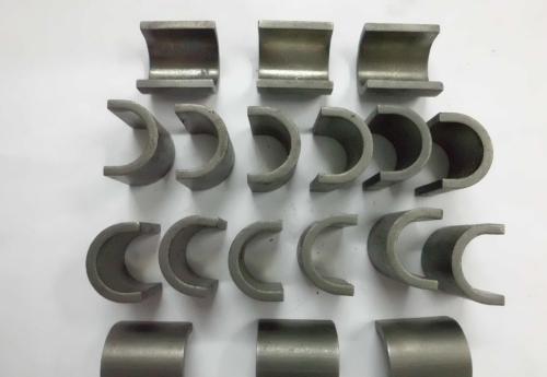 在粉末冶金生產(chǎn)中, 鐵粉的用量比其金屬粉末大得多。 鐵粉的 60% ~ 70% 用于制造粉末冶金零件。主要類型有鐵基材料、鐵鎳合金、鐵銅合金及鐵合 金和鋼。粉末冶金鐵基結(jié)構(gòu)零件具有精度較高,表面粗糙值小,不需或只需 少量切削加工,節(jié)省材料,生產(chǎn)率高,制品多孔,可浸潤滑油,減摩、減振、 消聲等特點(diǎn)。 廣泛用于制造機(jī)械零件, 如機(jī)床上的調(diào)整墊圈、 調(diào)整環(huán)、 端蓋、 滑塊、底座、偏心輪,汽車中的油泵齒輪、活塞環(huán),拖拉機(jī)上的傳動(dòng)齒輪、 活塞環(huán),以及接頭、隔套、油泵轉(zhuǎn)子、擋套、滾子等。 粉末冶金鐵基結(jié)構(gòu)材料的牌號(hào)用“粉”、“鐵”、“構(gòu)”三字的漢語拼 音字首“FTG”,加化合碳含量的萬分?jǐn)?shù)、主加合金元素的符號(hào)及其含量的 百分?jǐn)?shù)、輔加合金元素的符號(hào)及其含量的百分?jǐn)?shù)和抗拉強(qiáng)度組成。如 FTG60 -20 , 表示化合碳量 0.4% ~ 0.7%, 抗拉強(qiáng)度 200MPa 的粉末冶金鐵基結(jié)構(gòu)材料; FTG60Cu3Mo-40 ,表示化合碳量 0.4% ~ 0.7% ,合金元素含量 Cu2% ~ 4% 、 Mo0. 5% ~ 1.0% ,抗拉強(qiáng)度 400MPa 的粉末冶金鐵基結(jié)構(gòu)材料。